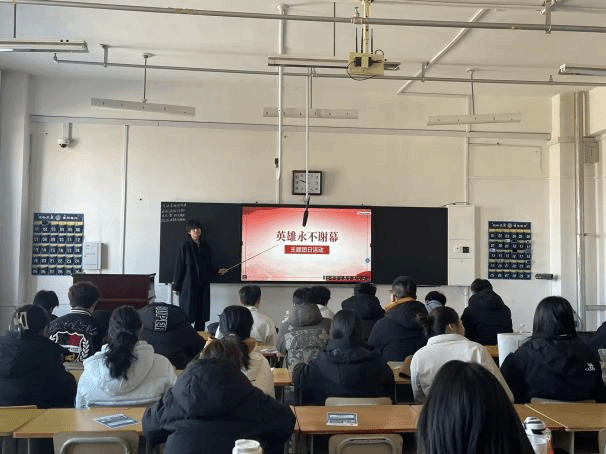 团委书记陈耀双主持,各班级主要学生干部、团员代表齐聚一堂,共计150余人参与这场兼具思想性与感染力的主题团日活动。陈耀双老师强调,雷锋精神是穿越时空的精神火炬,新时代青年要传承红色基因,以英雄为榜样,将雷锋精神融入学习生活、转化为实际行动;同时,他号召全体团员深入学习辽宁时代楷模金城龙同志的先进事迹,从榜样身上汲取奋进力量,践行青年责任与担当。